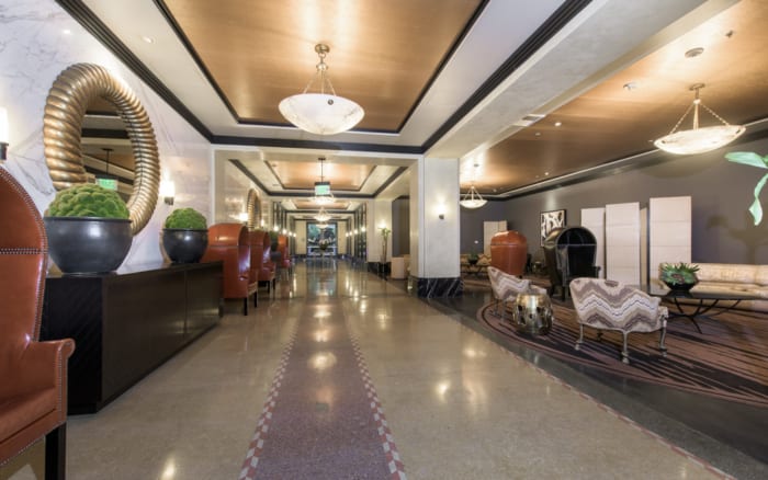 In 2006, the Eastern Columbia Building underwent a major $30M renovation courtesy of Killefer Flammang Architects. The exterior was saved from near-ruin with new tile and paintwork, while the insides were repurposed into 140 luxury condominiums, ranging in size from 720 to 2,750 square-feet. Eight penthouses (some with private terraces), a rooftop pool, spa, outdoor entertaining area, and fitness center (all of which lie in the shade of the building’s iconic electric light clock tower), a lobby designed by internationally renowned interior artist Kelly Wearstler — the new Eastern Columbia Building stands as a shrine to both its past and present.